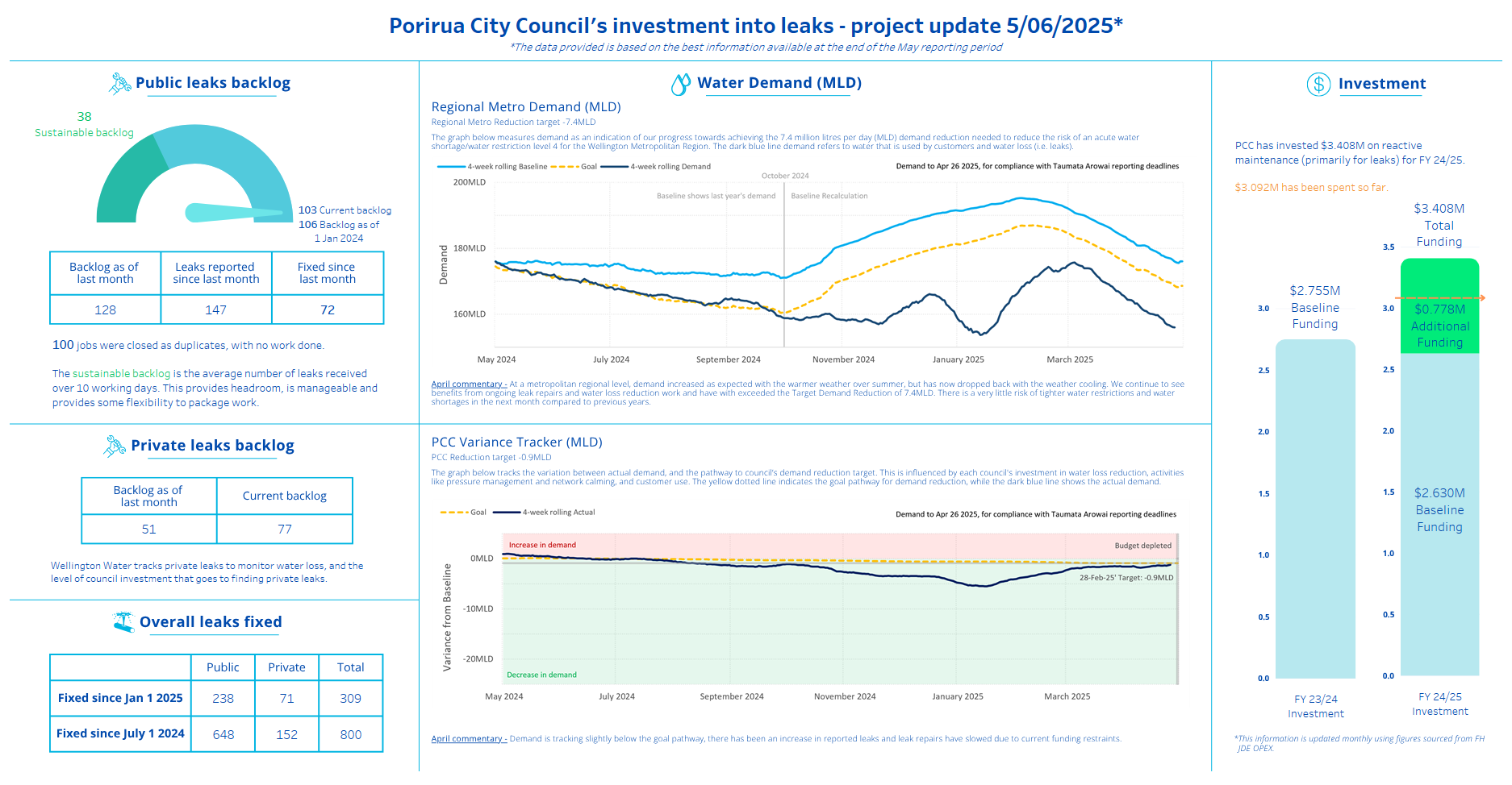 We want to keep the region up to date on the state of their network, so provide monthly reports on leak repairs and the backlog level.