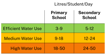 Once you've gained an understanding of how much water your school is using, use this table to see if your school is an efficient, medium or high water user.