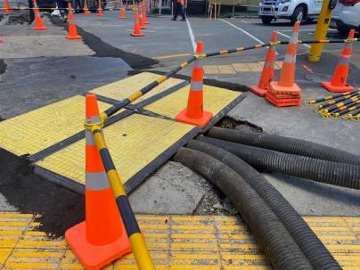 The temporary above ground pipe has been installed and wastewater is now flowing through it from Dixon St to Ghuznee St along Willis St. Thanks to the crews who have been working around the clock to get this up and running.