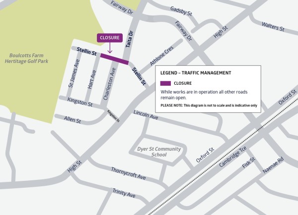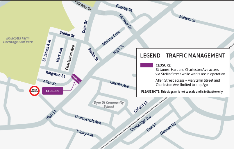 - Vehicle access to Stellin Street (from Fairway Drive) will continue to be available via High Street.