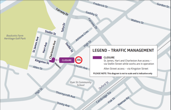 - Vehicle access to St James Avenue, Hart Avenue, Charleston Avenue, Kingston Street and Allen Street will continue to be available via Kingston Street for residents, businesses, pedestrians, deliveries/couriers, and medical and emergency services. We will provide further updates as work progress.