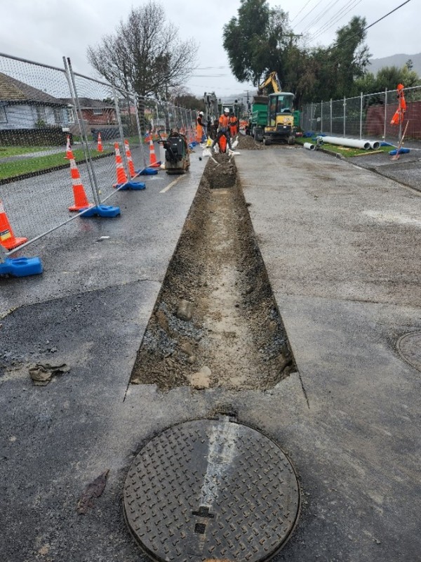 The Year 2 programme of works kicked off in March 2023. This involves replacing pipes that carry wastewater along the centre of Taita Drive and across Fairway Drive in Avalon.