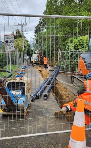 Works will be temporarily on hold for one to three weeks. This is due to limited workers in the region and an urgent project. Action Civil’s crew will be called away to complete this work. The Stage 2 road area will remain open during this time and the trench is backfilled and asphalted.