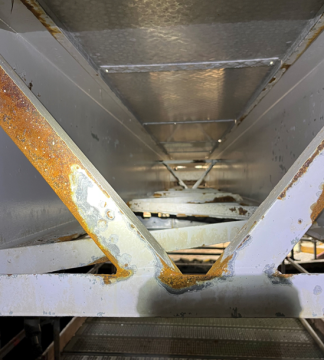 Examples identified were corrosion around various bolts and brackets (Image 1) that help support the internal structure. These will be replaced along with other key steel structural supports that may require cleaning/recoating to protect against future corrosion (Images 2 & 3).