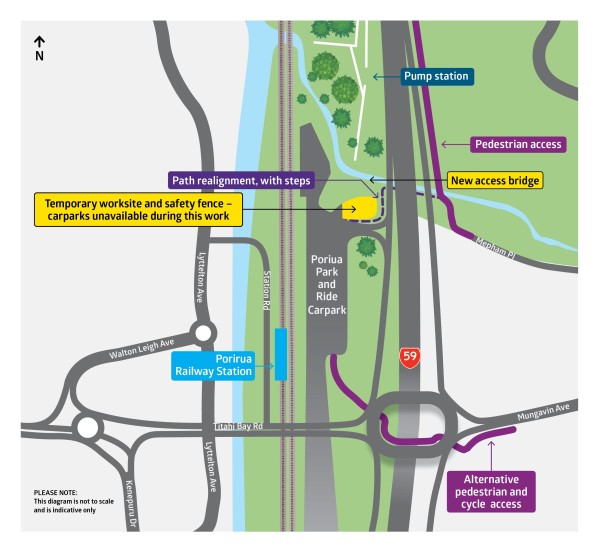 There will be temporary changes to access to the underpass from the Poirua Railway Station carpark to Mepham Place, from 16 January 2023.