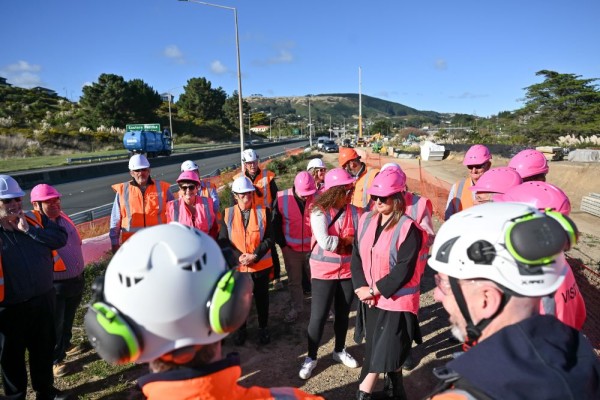 Porirua Mayor Anita Baker and councillors visited the wastewater storage facility construction site, next to SH 59 to get a first hand look at progress.