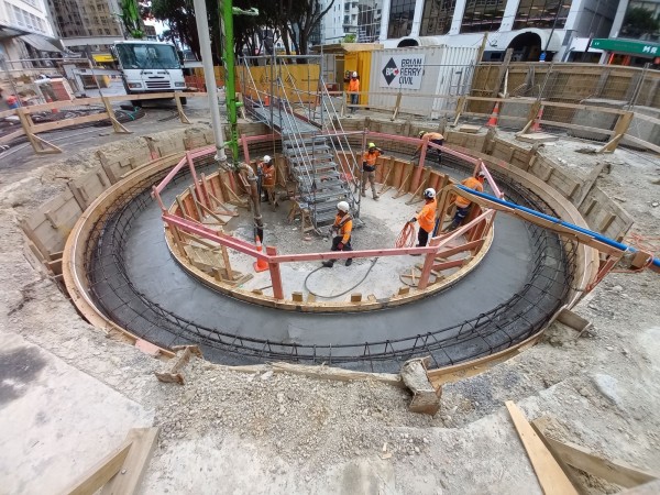 The excavation will be done in stages. The first part will go to 5m below ground where a structural ring beam and shotcrete wall will be installed to the inside of the piles. The dig then goes a further 4m deep to install the floor.