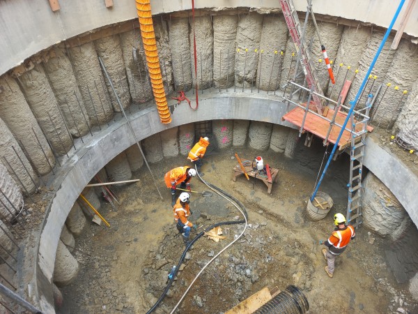 Work excavating the 9m deep shaft commenced in the New Year and has now been completed. This was done in two stages, with the first part down to 5m below ground where a structural ring beam and shotcrete wall were installed to the inside of the piles.